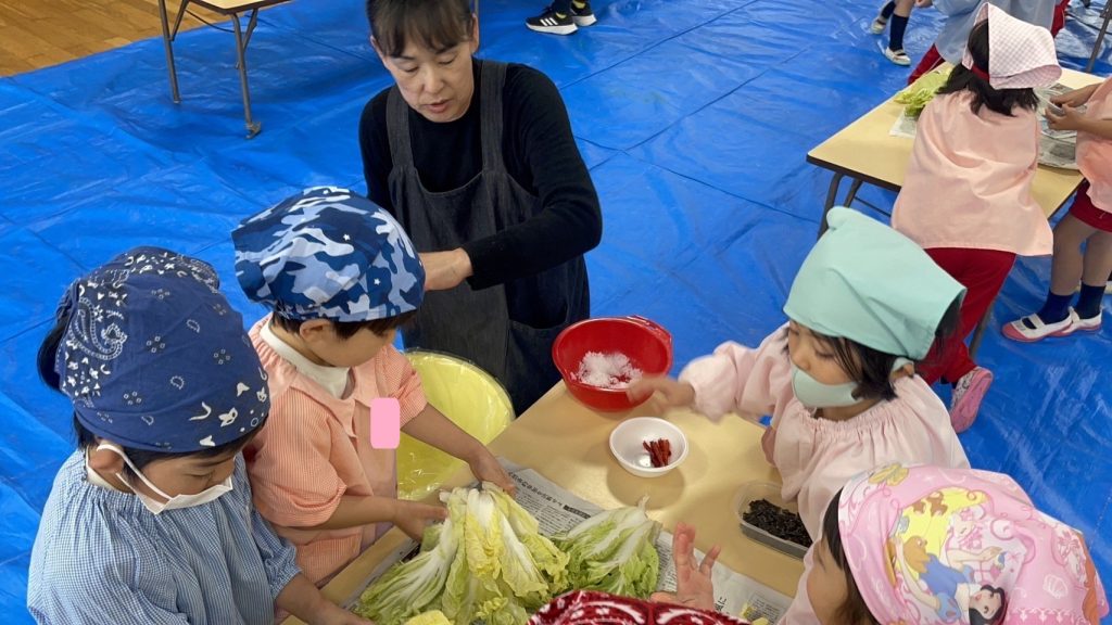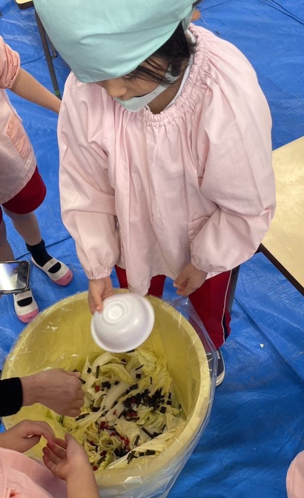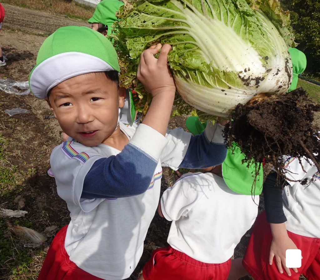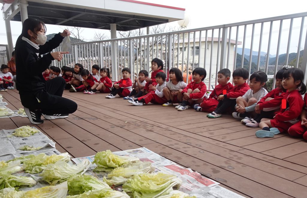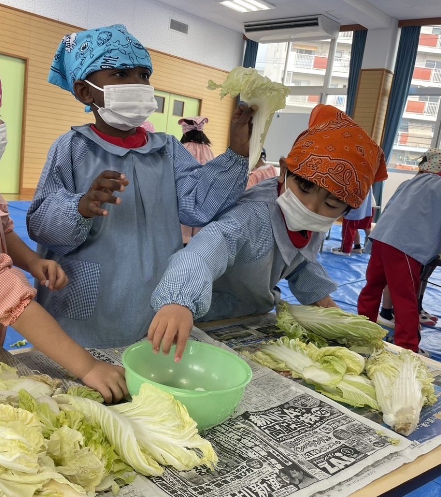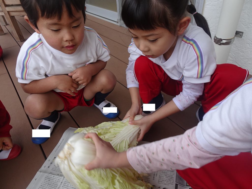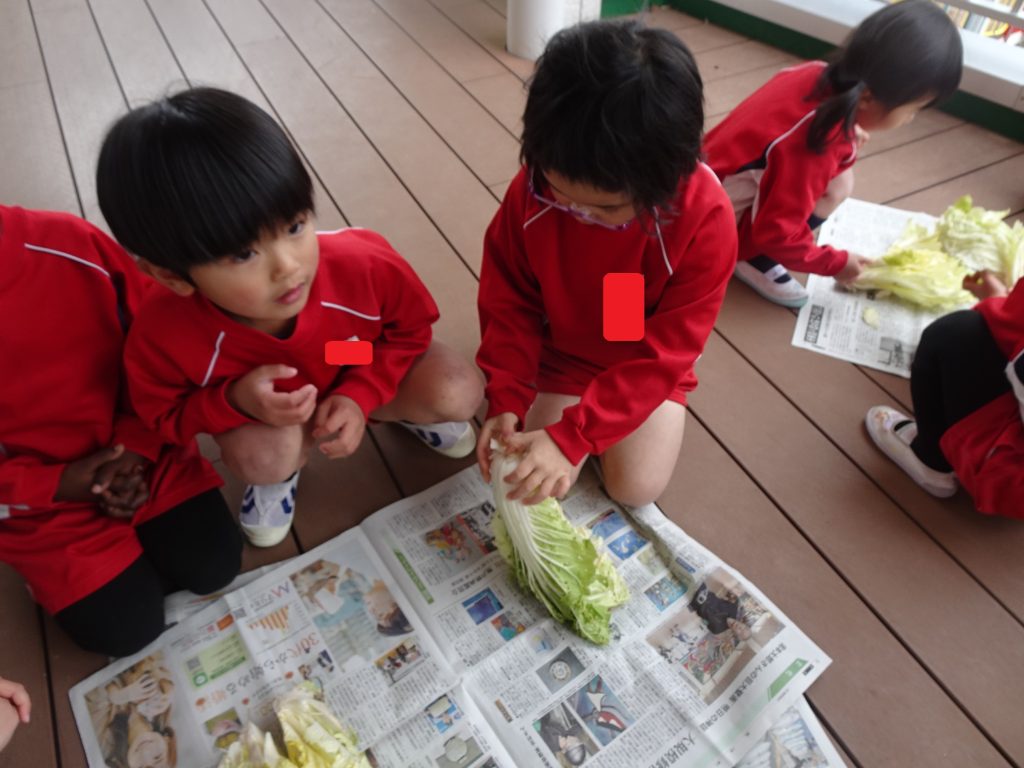 1月31日、年中組が園の畑で収穫した白菜の調理に挑戦しました。