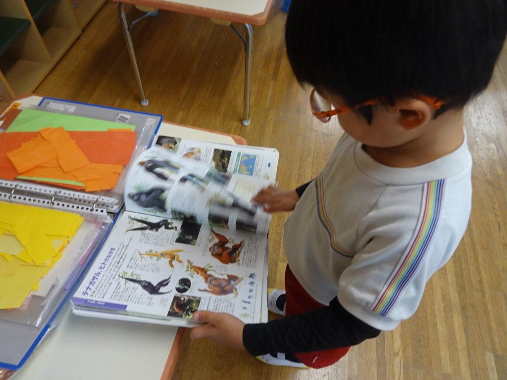 と、思い思いに新聞紙で作り始めました。図鑑を開いて何やら研究中?!