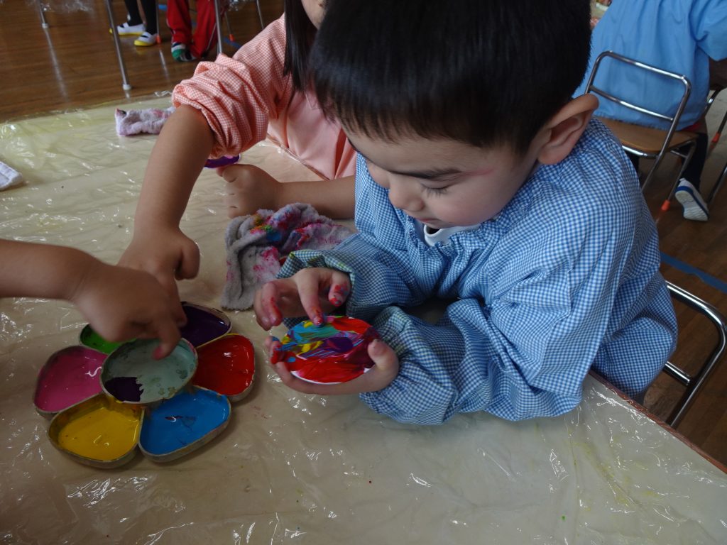 年長組の素敵な立体作品を見ると・・・憧れの気持ちも芽生えてきたようです😊