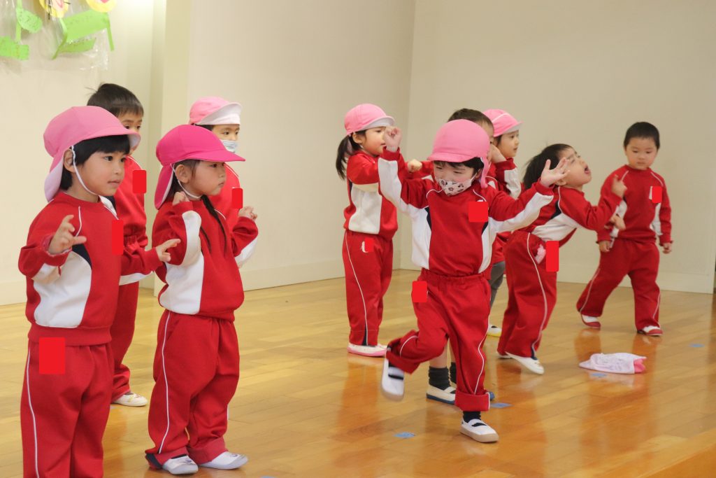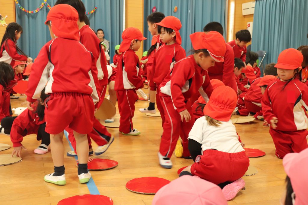 年中さんは、得意のダンシング玉入れで勝負を挑みました!