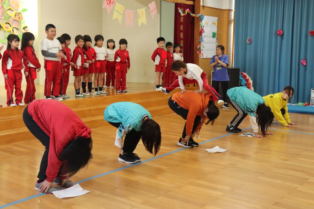 まずは、学年ごとに年長さんとゲームで対決!