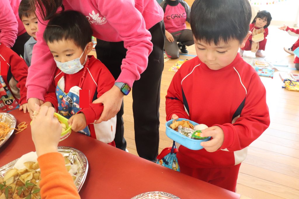 みんなでいっぱい遊んだ後は・・・お楽しみのバイキング給食~!!!
