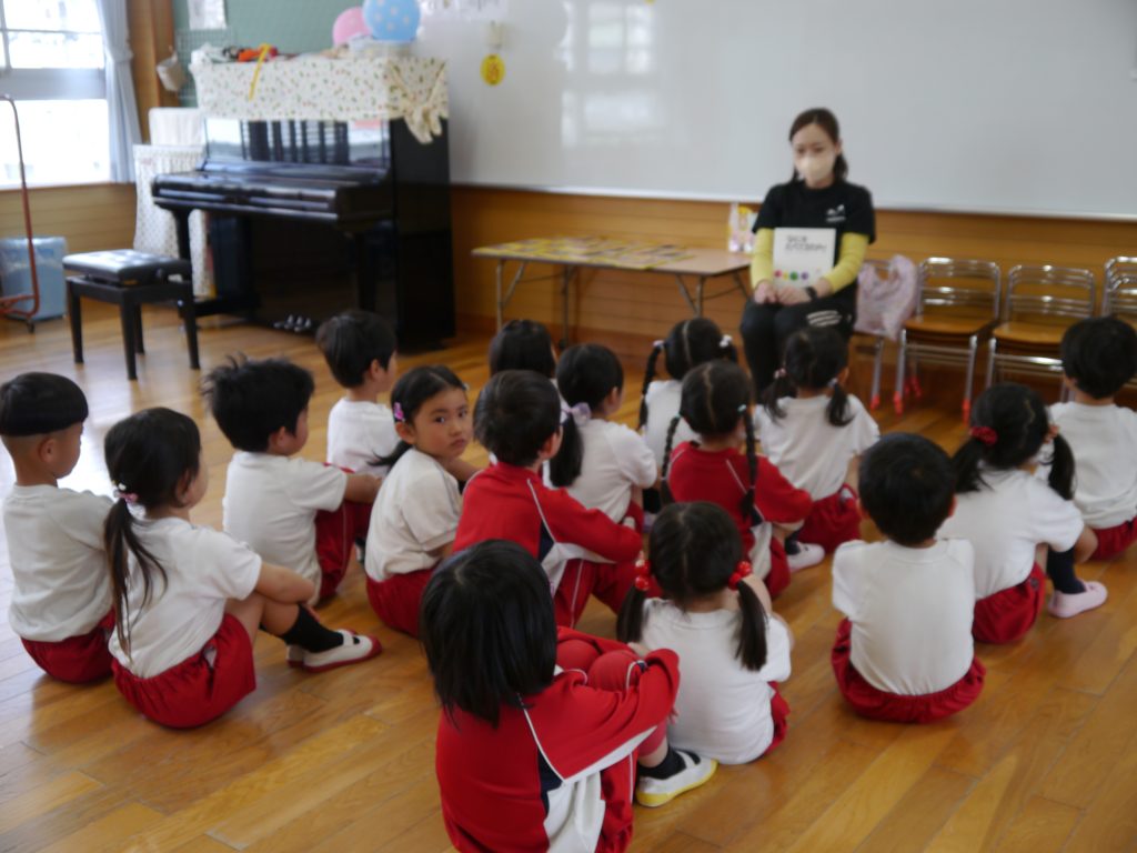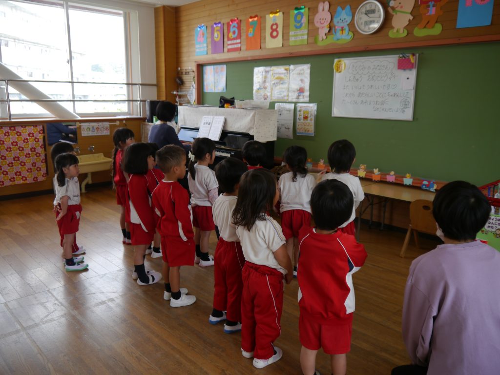 2024.04.09 新学期スタート 新学期がスタートしました。 今日は、どんなことするのかなあ? 10時、ゆり組さんの元気な朝のお歌がきこえてきたよ。 きく組さんも歌ってる。 もも組さんは、しっかりお話を聞いてるね。背中もピンとのびてて、かっこいいなあ。 お返事の仕方も、さすが年長さんです。