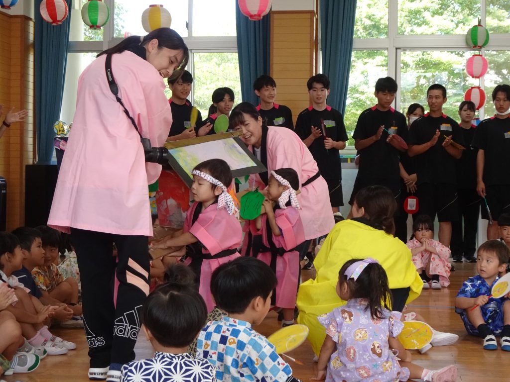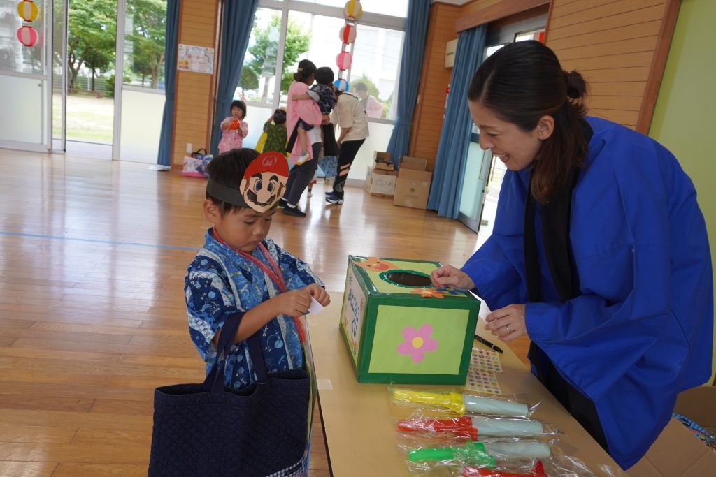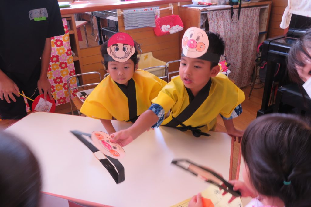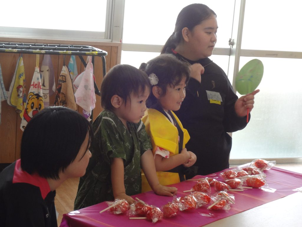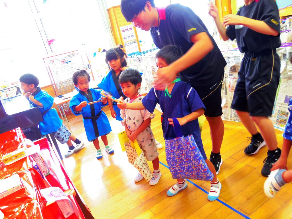 高校生とも交流ができ、笑顔あふれる夏祭りごっこでした。