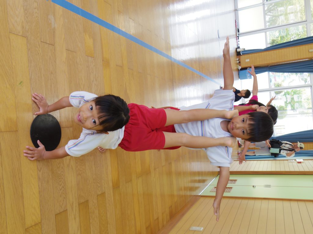 年長さんは種目もたくさん!毎日元気な声が聞こえてきます。組体操の練習は真剣な表情です!