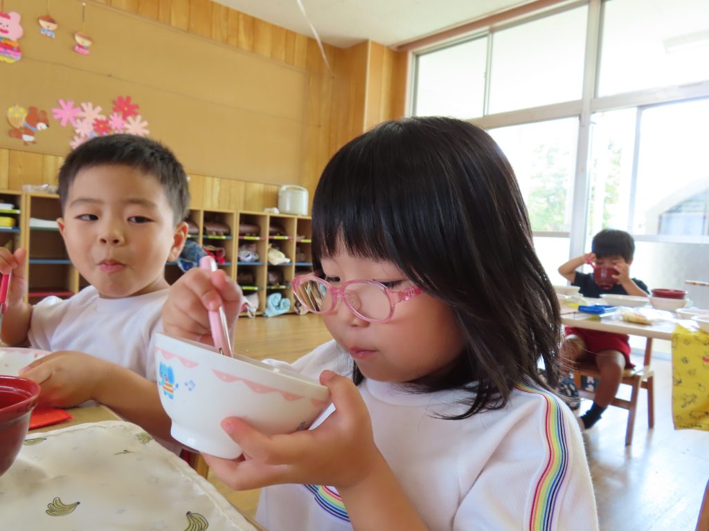 新しいお友だちも給食モリモリ食べています!