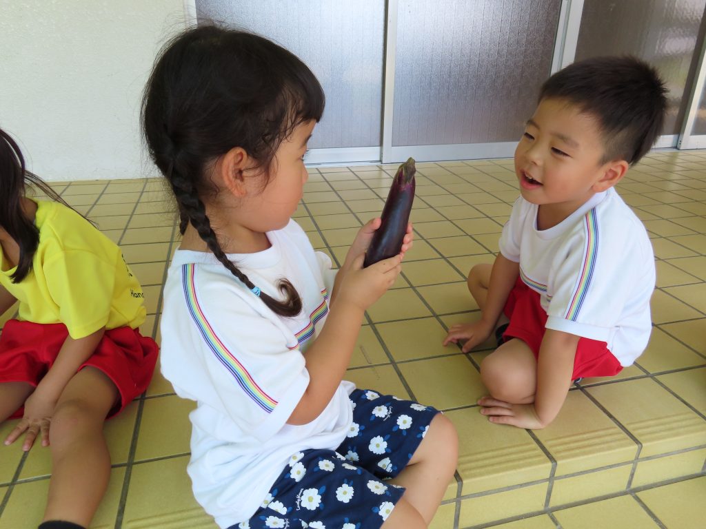 幼稚園の夏野菜も実っています。夏休み中にひまわりさんがお世話してくれたんだね☆大きいね~!!