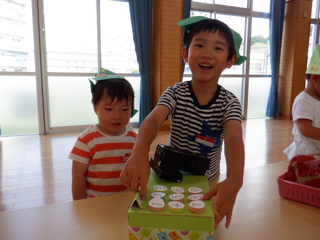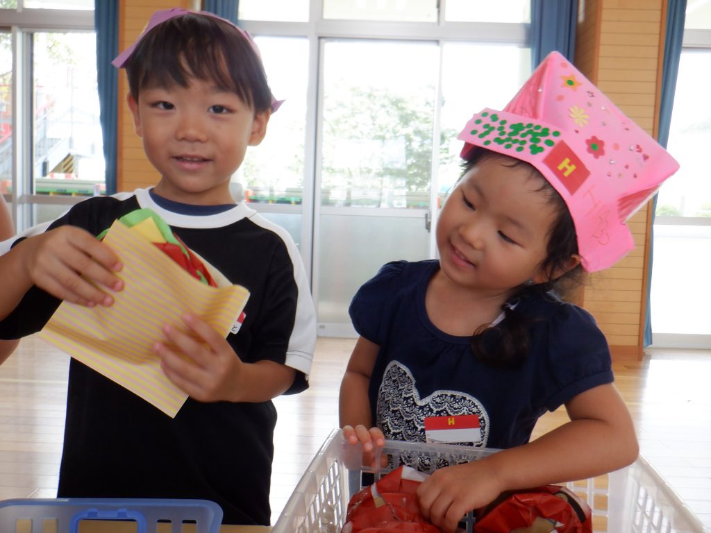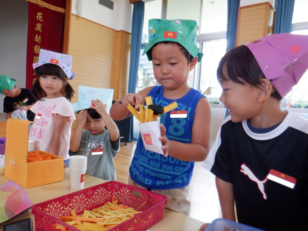 夏休みに預かり保育「ひまわり」に来ていた子どもたちが、一生懸命準備してきた“ハンバーガーショップ”がついにオープン♪♪