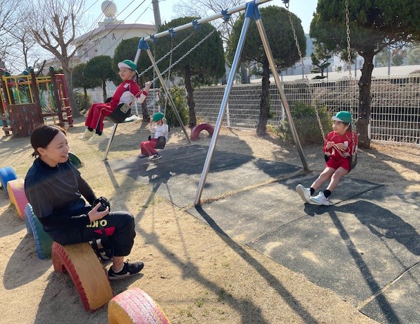 2025.03.10 年長さん密着Week@園庭⚽ 今週末15日(土)は、いよいよ年長さん34名の卒園式です💦 とても寂しくなります(T_T) そこで、今週のブログは「年長さん密着Week」と勝手に命名✨ 年長さんとの思い出作りをしたいと思います💓 どうぞお楽しみに♪ 朝から園庭に出ると、年長さんと先生が何やら仲良く女子トーク💓 砂場に行くと「先生、目つむって」 目をつむると、、、思い切り穴の中に落とされました(/・ω・)/「こら~」走って追いかけてハグ💓 園庭に目を向けると、幼稚園で1番キック力のある男の子がボールをキックしようとしていました⚽ 反対側に回ってみると、女の子の守備隊が! ガッチリ守りそうですね✊ 「先生見て~!」ターザンロープでびゅーんとお友達が飛んできました! 次は別のお友達に、もう一つのターザンロープに連れて行かれました。「僕ね、こんなところまで登れるよ~」 次は鉄棒のほうから呼ばれます。「先生見て~」 鉄棒もとっても上手です! 「これね、花が咲くのを待ってるんだよ🌷」 と教えてくれました(^^)/ 「先生こいで~ 100円あげるから~」 「自分でこいでごら~ん」 このやり取りができなくなるのは寂しいな・・・😿