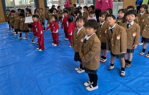 本日10時から令和6年度修了式を行いました。初めての年長さんのいない式、もうすぐ進級するんだという意気込みが感じられました✨ 園長先生からは1年間の振り返り「食育」と「遊び」についてお話しがありました「なんでもよく食べた!」と自信満々に手をあげる子もいれば、「苦手なものはちょっと残したこともある」と正直に答えることのできる子もいて、どの子も立派でした! 明日から春休み🍀みんな、また元気に登園してね💖