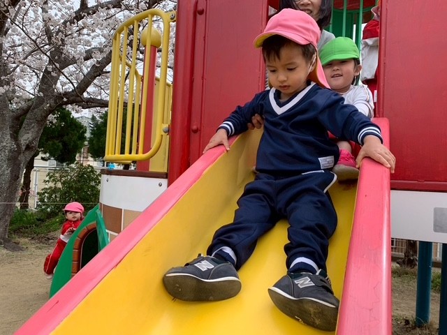 2025.04.01 新年度✨『にこにこ保育園』開設👶!! 令和7年度スタート! 認定こども園花高幼稚園においても、ついに2歳児保育『にこにこ保育園』 開設いたしました~!・・・エイプリルフールではありません( ´艸`) 本当に2歳の可愛いお友達が幼稚園に来てくれましたので、その様子をご覧ください♪ 新年度🌸記念に、朝の園庭をパシャリ📸 空から太陽の光がさして神々しい✨ 早速、お外に遊びに行こう! 自分たちで靴をはいていましたよ👞 アンパンマン滑り台にもチャレンジ~ 給食もモリモリいっぱい食べました🎵 そして、すぐにすやすやお昼寝~ どんな夢を見ているのかな💕