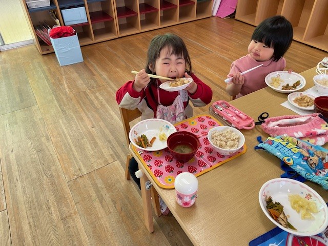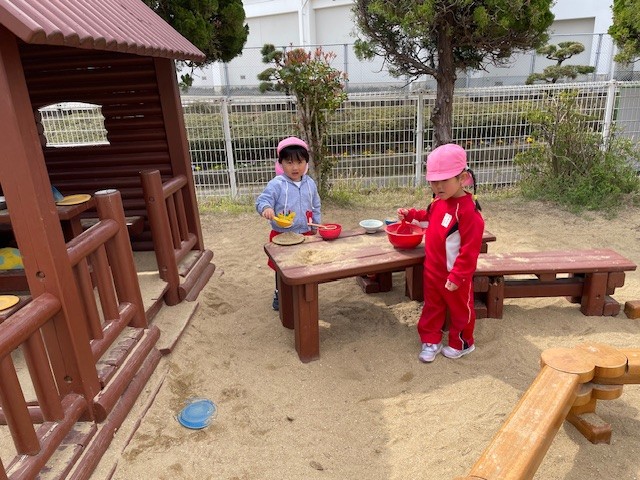 2025.04.03 新しいお友達♬ 春休み中の預かり保育に新しいお友達が来てくれました🎵 こちらがびっくり!するくらいすぐにみんなとお友達になっていましたよ~ これからの成長が楽しみですね💓 2人とも4月から来てくれたお友達👶 仲良く砂場で遊んでいました💕 今日初めて来てくれた米国籍のお友達と、すぐに打ち解けていました💓 素晴らしい国際感覚! ちょっと休憩する新しいお友達☕ この後、一緒にボール遊びを楽しみました⚽ こちらも新しいお友達とおままごと おいしそうなスープを作って持ってきてくれました💕 モリモリ食べる先輩在園児を優しく見守る新しいお友達💕 こちらは、新しいお友達を迎えて嬉しくて笑いが止まらない在園児グループ💕 美味しいお顔(^^)/ こちらまで幸せになりますね💓