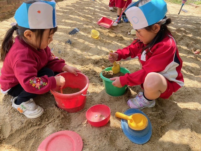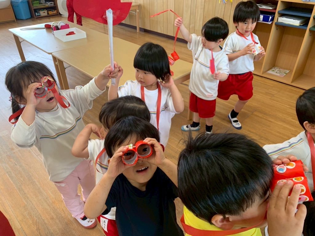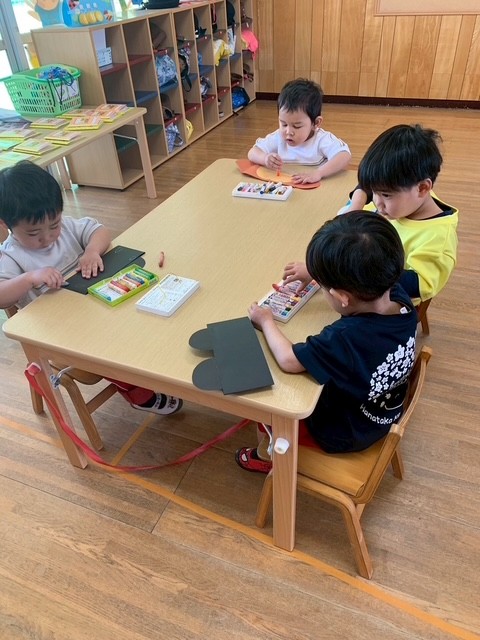 2025.04.15 動物になりきろう🐵🐻🐧 今月23日は動物園に遠足に行きます! お友達は、その前に動物のことを調べたり、動物さんたちの前で披露するダンスを練習したり楽しんでます🎵 みんなで仲良くサークルタイム✨ 入園したばかりと思えないほど、みんなしっかりしています! 何やら集中して制作をはじめましたよ! こちらも何やらお絵描きしています🖍 じゃーーーーーん! おさるさんになっちゃった🐵 🐻くんと🐧くん、ポーズ決まってます✊ 🐧ちゃんたちは、「ペンペン」言いながら砂場で遊び始めました🎵 日米仲よしおさるさん🐵🐵 双眼鏡も作って探検していました! 子どもたちの目には、いろんな素敵なものが見えていそうですね✨