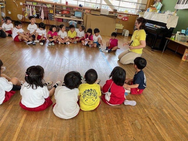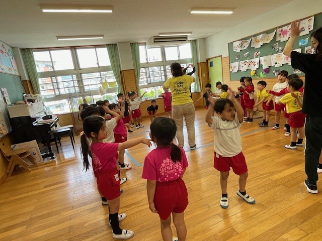 2025.05.15 多言語活動はじまりました🎤 今年度初めての多言語活動が始まりました🎤 ヒッポファミリークラブのちかさんによるいろんな国の言葉と音楽に、子どもたちは目をキラキラ輝かせながら楽しく活動していましたよ♪ さあ、みんな輪になって踊りましょう(^^♪ まずは耳慣れと物まねです🎵 年長クラスでは外国籍のお友達がみんなをリードして大活躍! 年中クラスも、聞いたことのない外国の言葉に興味津々👂