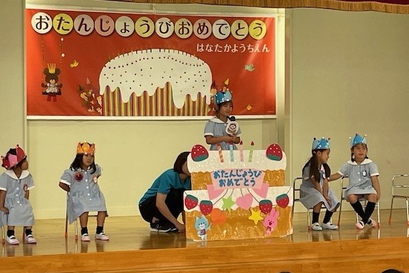 2025.06.18 6月のお誕生会🎂💐 6月生まれさんのお誕生会をしました🎂 みんなそれぞれの素敵なところをこれからもいーっぱい伸ばして大きくなってね💕 先生たちが作ってくれた素敵な冠をかぶって入場の合図を待っているお友達💗 6月のお誕生さんたちがステージに揃いました♬ みんなで「ハッピーバースデー♬」をうたってお祝いの気持ちを伝えました♬ 一人ずつ、堂々と発表できていました!🎤 お誕生さんもハンドベルとシンバルで演奏を披露してくれました(^^♪ 素敵な笑顔💗で、ハイ!ハッピーバースデー👑 5月生まれのお友達も、誕生会お祝いできてよかったね☆ 本当におめでとう(^^)/