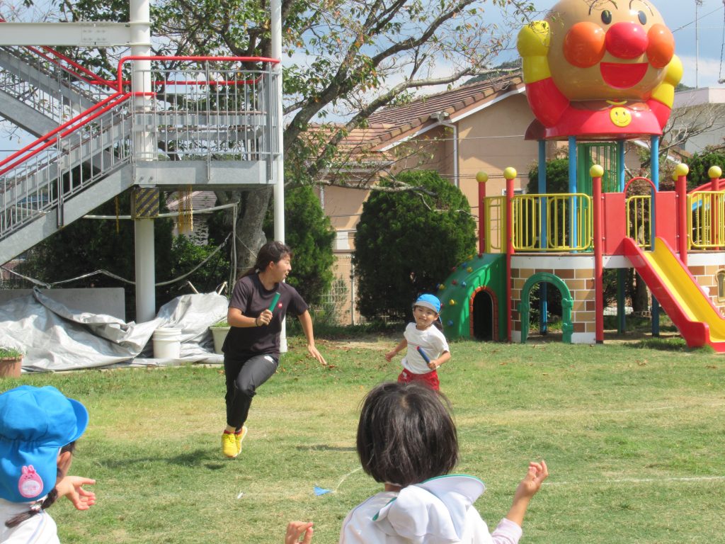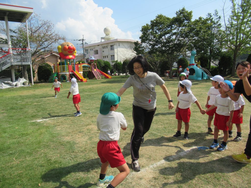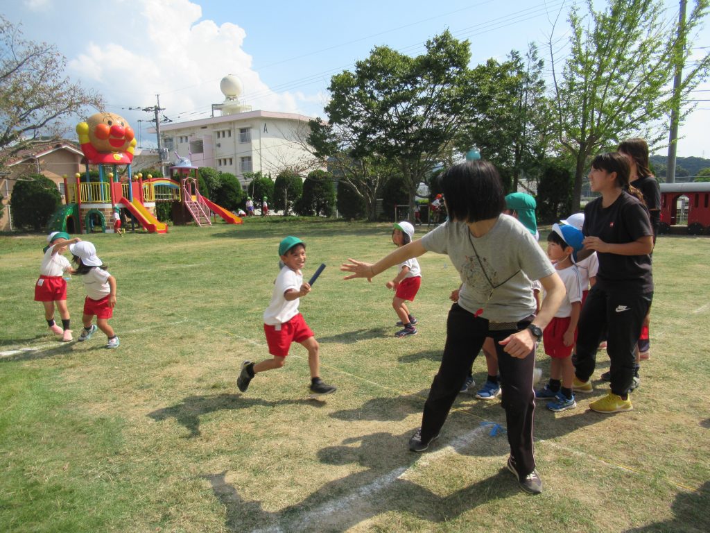 運動会に向けて毎日練習を頑張っている子どもたちに刺激を受け、先生たちもかけっこの特訓中!