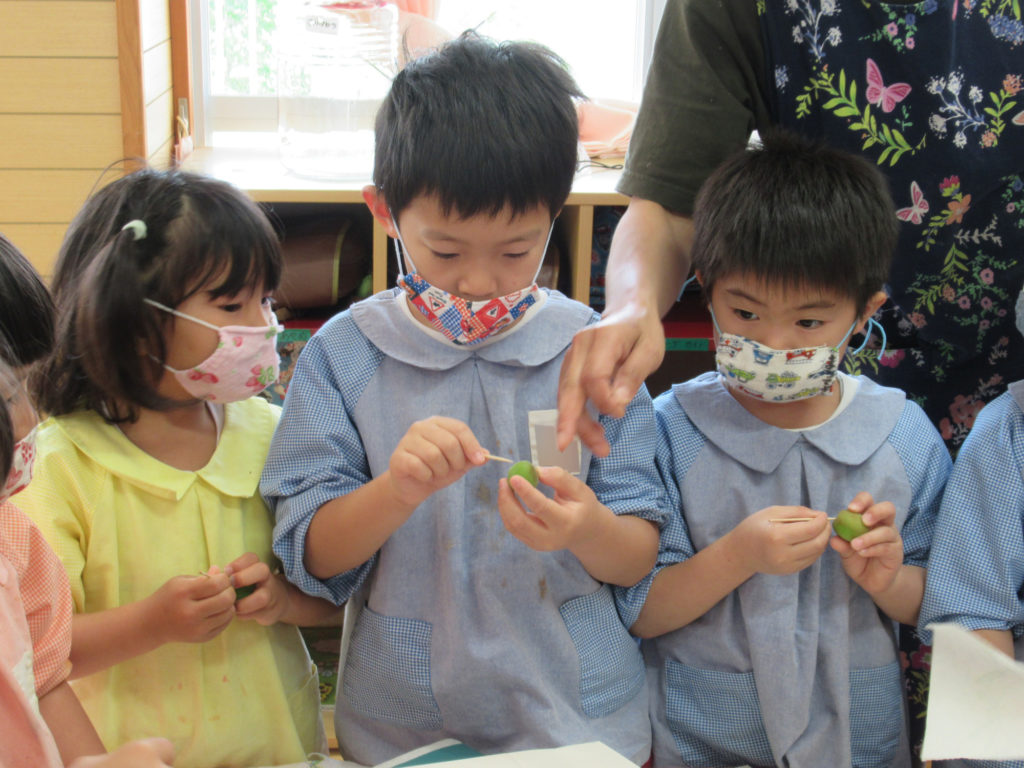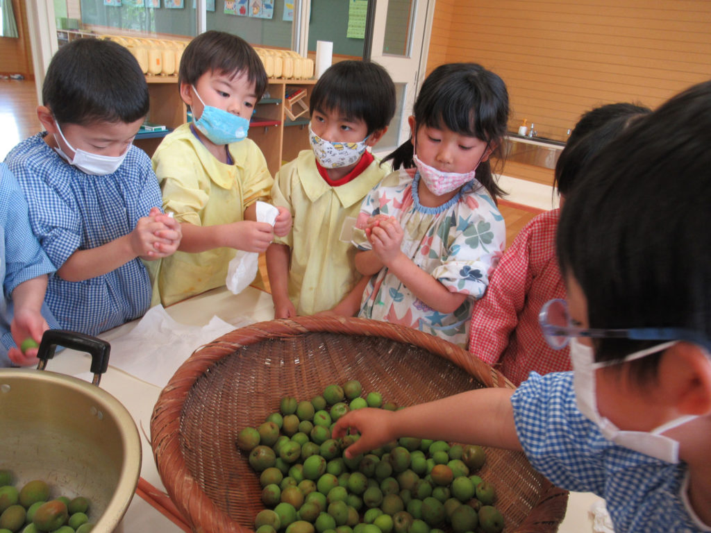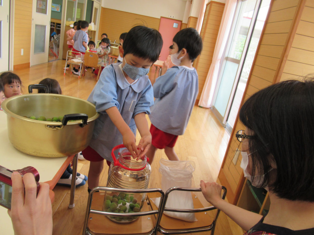毎年恒例!年長さんの“梅干しづくり”が始まりました♪