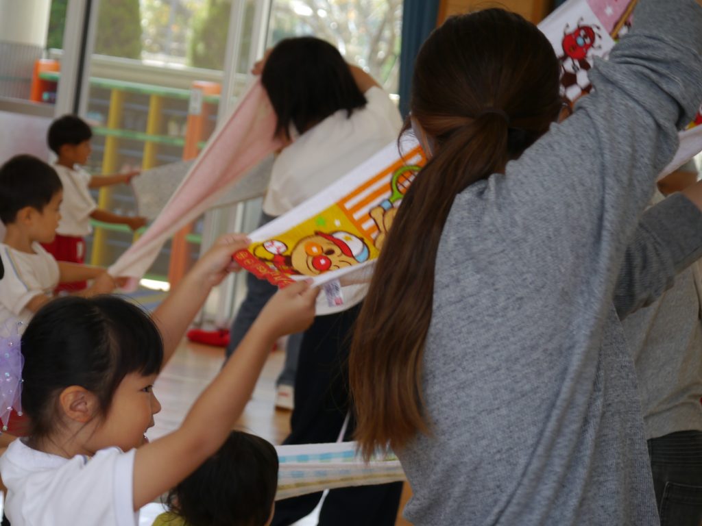 タオルを使った運動遊びを中心に、折原先生が、親子で楽しくできる色々な遊びを教えてくださいました!