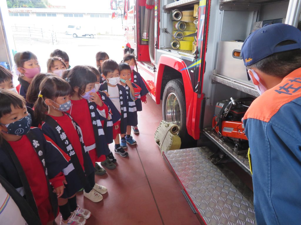 「街中で消防車が通る時は道を譲ってね・・・」と教えてもらい、子どもたちは、早速お家の人に伝えていましたよ😊