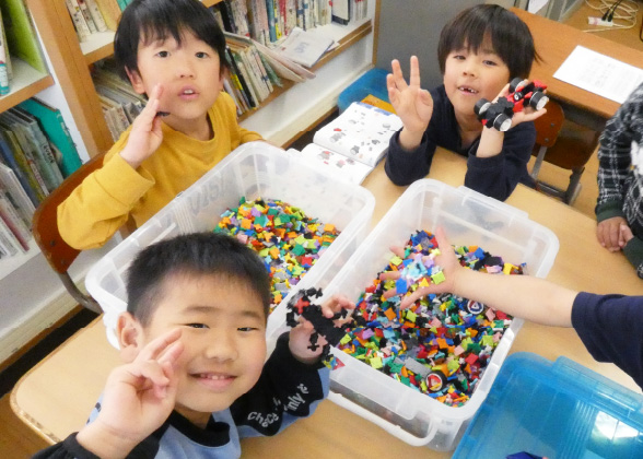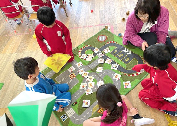 14時以降は「ひまわり」のお部屋で過ごします。おやつを食べた後は、園庭で遊んだり、廃材で思い思いの作品を作ったり、子どもたちの主体性な遊びを大切にしています。また、年少々から年長児までが同じ空間で過ごすため、異年齢の仲間との交流を通して、子どもたちは多くのことを学んでいるようです。